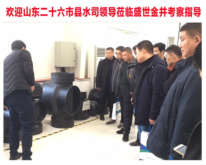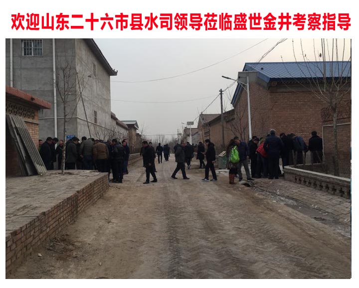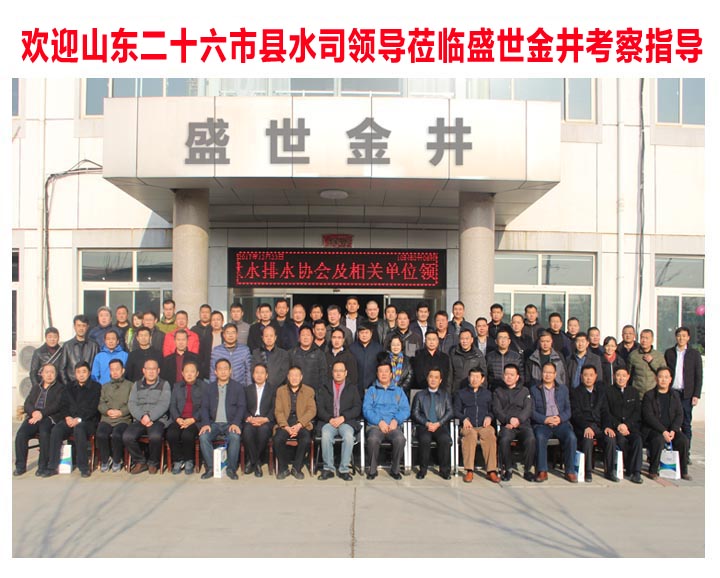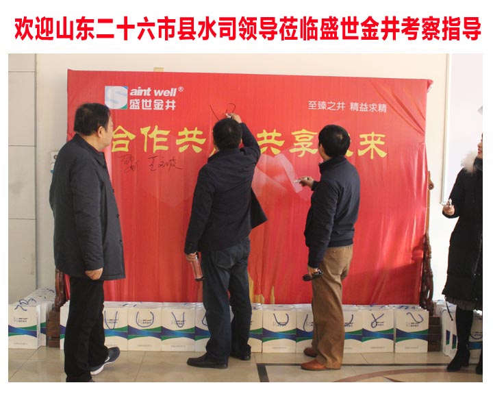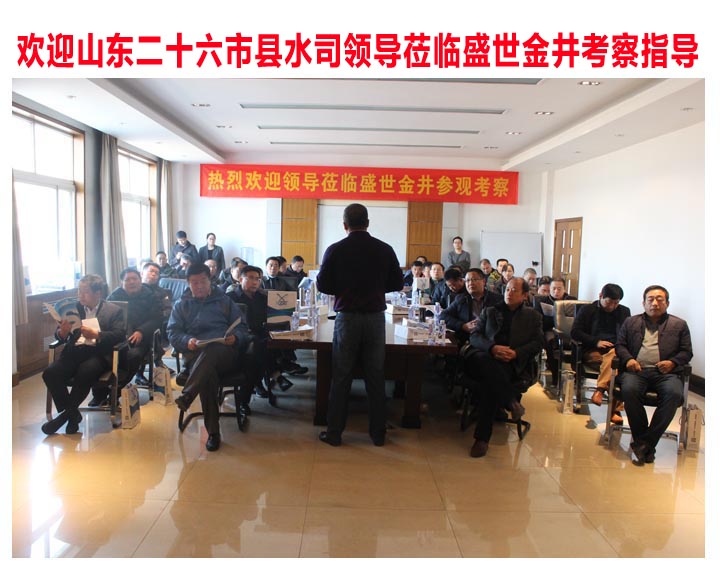 2017年12月23日,山東省二十六市縣水司大型領(lǐng)導(dǎo)考察團,蒞臨盛世金井參觀考察。盛世金井董事長、營銷中心總經(jīng)理、技術(shù)部經(jīng)理、市場部經(jīng)理、銷售助理及相關(guān)領(lǐng)導(dǎo)熱情接待。